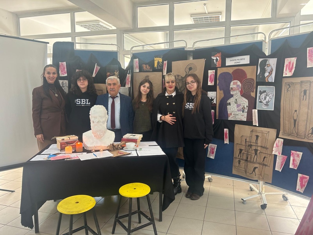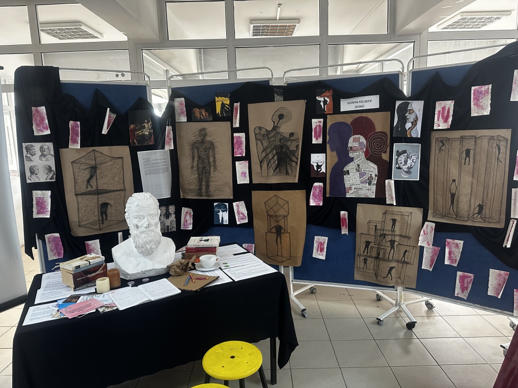 Mehmet Serez Sosyal Bilimler Lisesi öğrencileri gerçekleştirdikleri bir sergiyle 'Dünya Felsefe Gününü’ kutladı. Okulumuz öğrencilerinin Felsefe Kulübü çatısı altında oluşturdukları sergi, öğrenci ve öğretmenlerden büyük beğeni topladı. ‘Felsefi Düşüncenin İnsan Varoluşu İle Etkileşimi’ konulu sergide kitaplar ve müziğin iç içe geçtiği bir kompozisyon oluşturuldu. Sosyal Bilimler ailesi olarak çalışmada gösterdikleri desteklerinden dolayı başta Okul Müdürümüz Mehmet Solak olmak üzere idarecilerimize teşekkür ederiz. Sergi danışmanlığını üstlenen Felsefe Öğretmeni Didem Fatma Özdemir'i, resim çalışmaları için 11 C sınıfı öğrencisi Aysu Defne Çolak’ı, metin çalışmalarını tasarlayan 11 A sınıfından Burçin Kahraman’ı ve Bennu Naz Perver’i kutlar, başarılarının devamını dileriz!